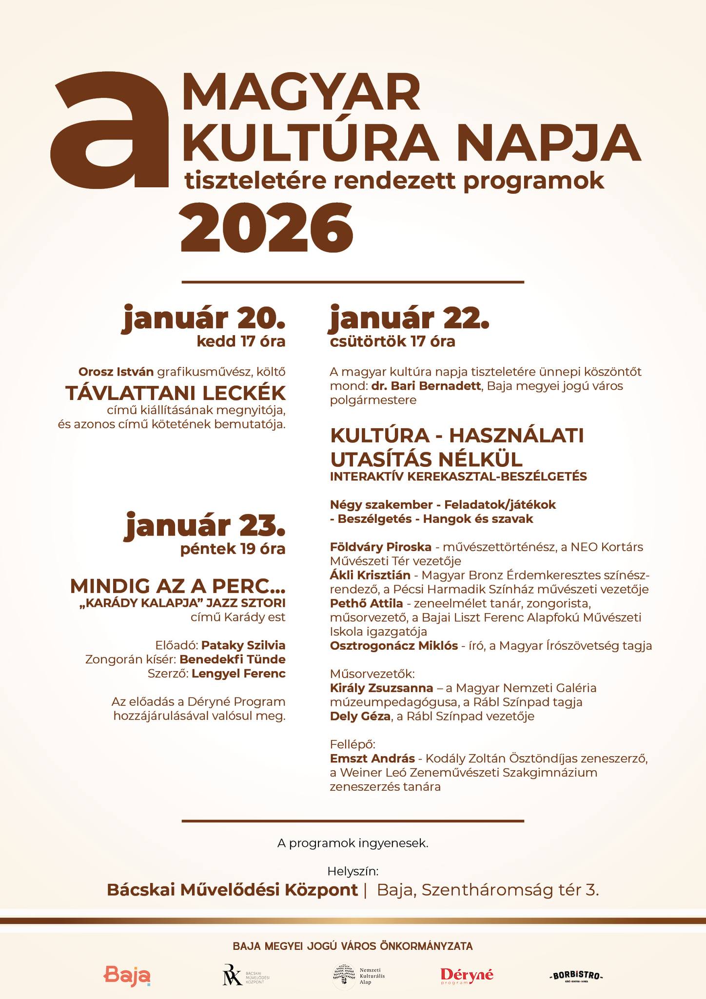 A Magyar Kultúra Napja tiszteletére szervezett eseménysorozat Baján.