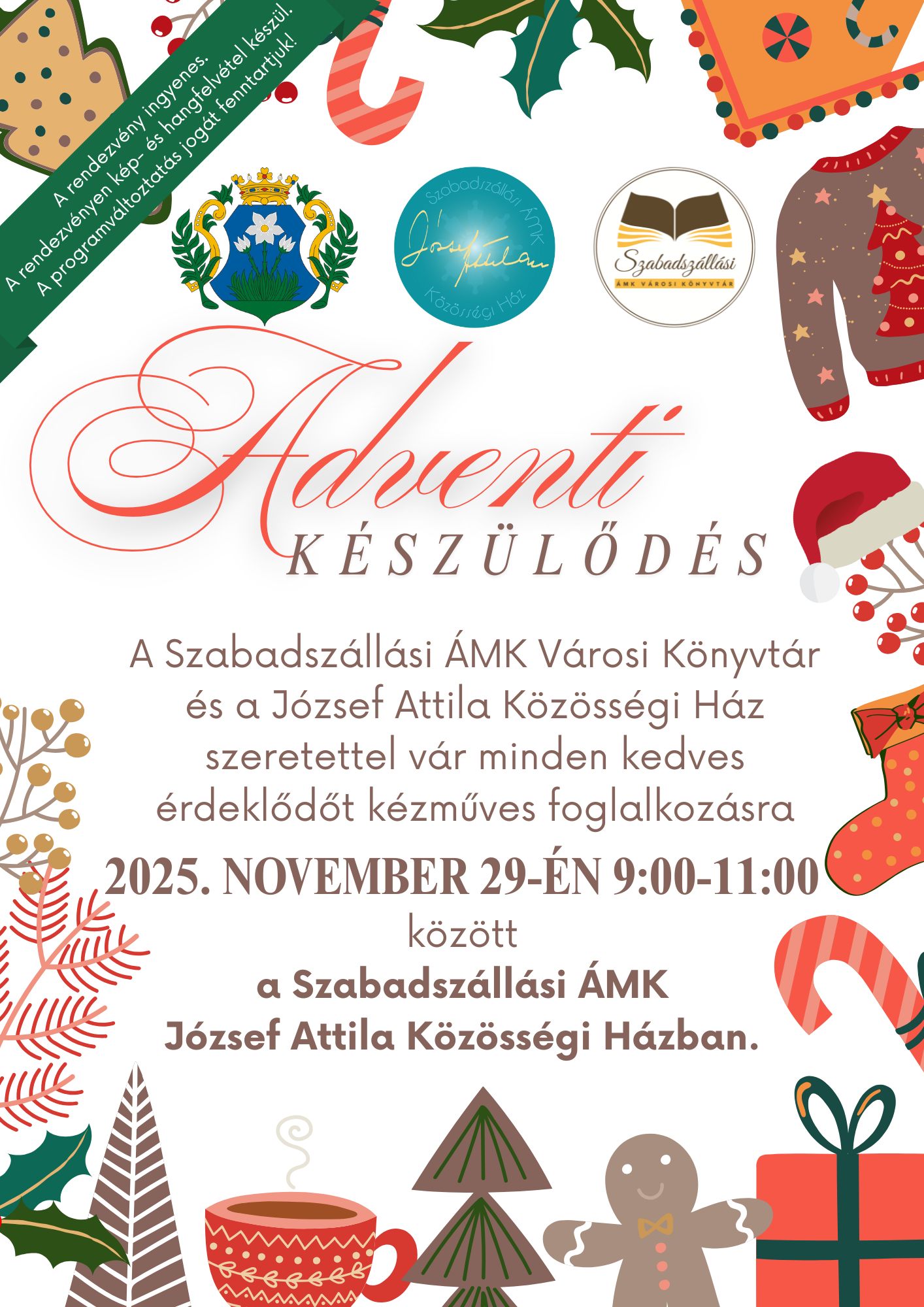 Kézműves foglalkozással és egy kis ünnepi illattal, zenével várunk minden kedves érdeklődőt.