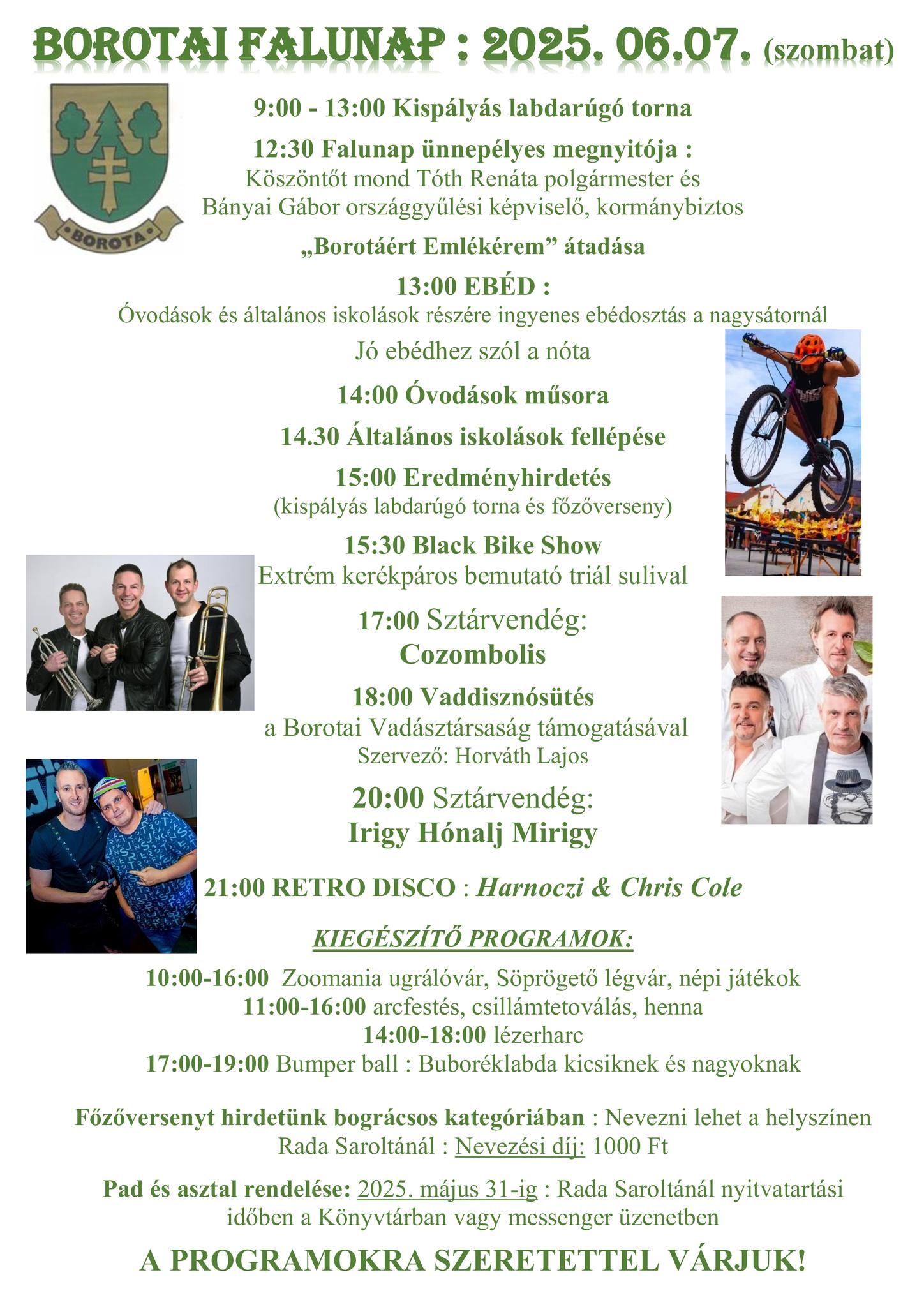 A Falunap a Sportpályán minden évben megrendezésre kerül a közösség építés céljából, ahol az iskolások és az óvodások, valamint egyéb előadó meghívásával színvonalas műsorokon keresztül a falu lakossága összekovácsolódhat.