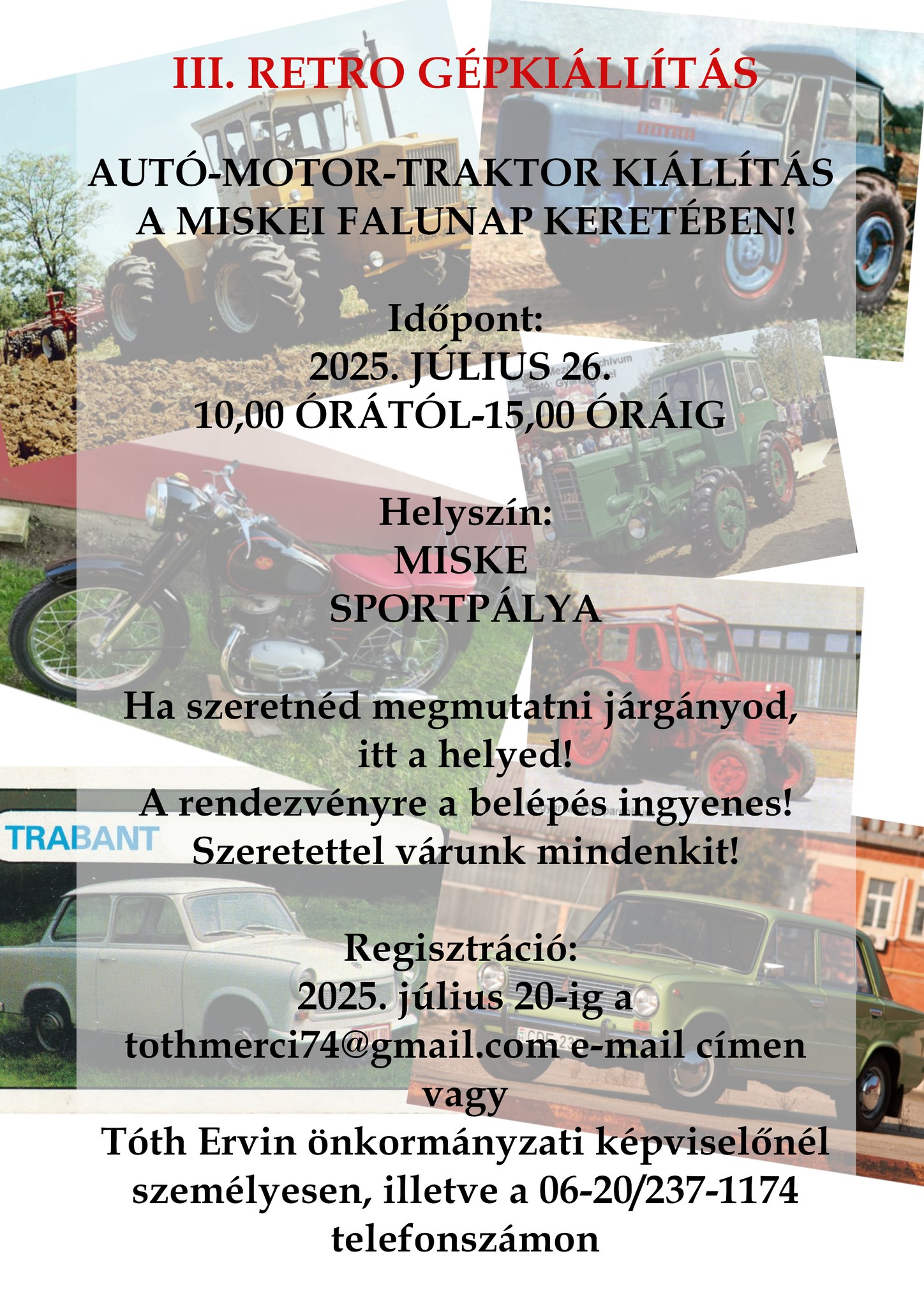 Minden évben megrendezésre kerülő legnagyobb községi rendezvény. A rendezvény keretében Retro Gépkiállítás, pörköltfőző verseny, néptáncosok fellépése. Esti órákban sztárfellépők és disco.