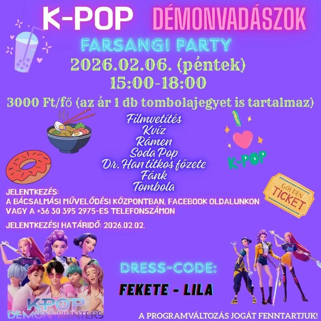 K-POP démonvadászok farsangi buli Bácsalmáson.