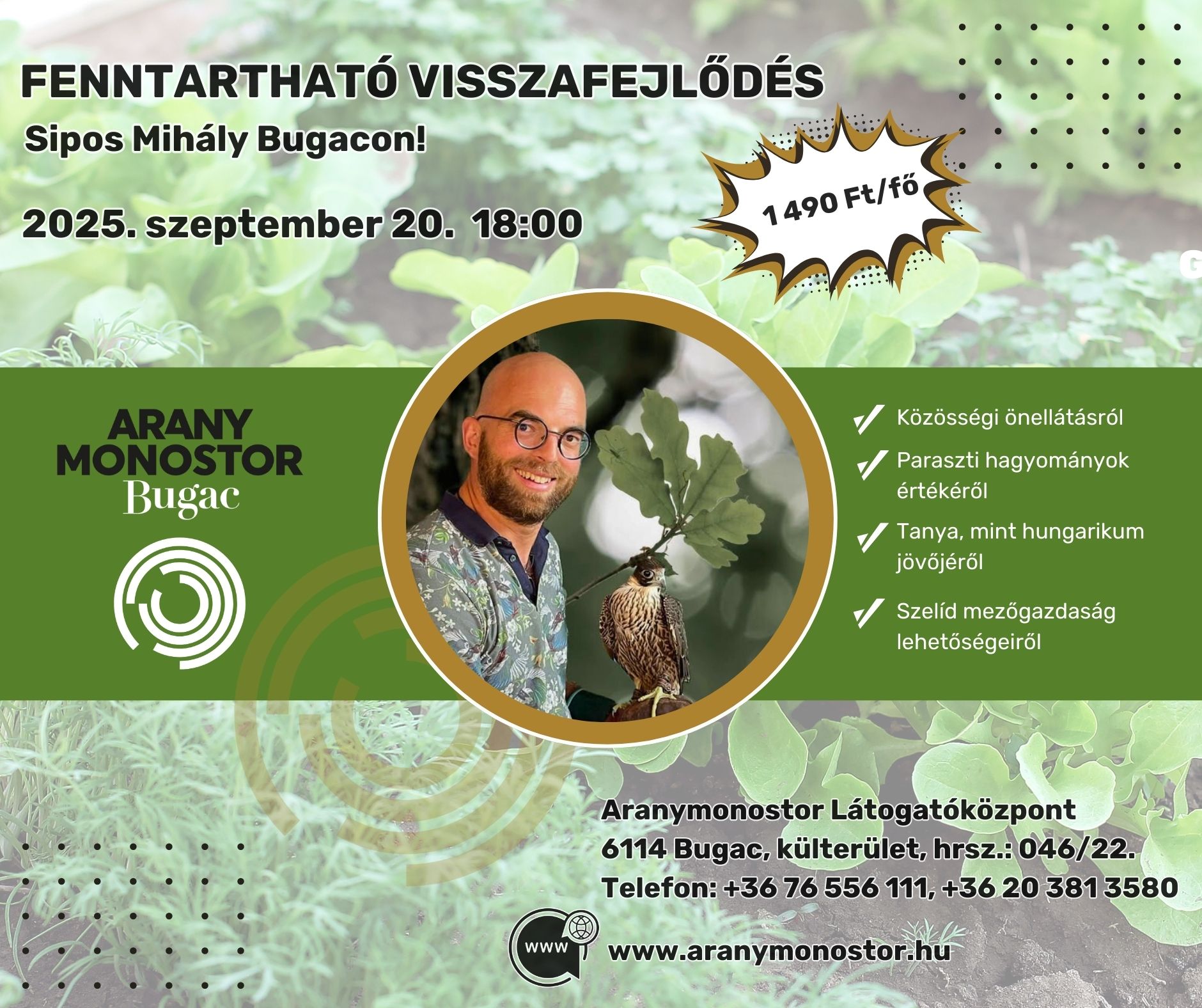 Ezen a különleges előadáson Sipos Mihály agrármérnök a vendégünk, a Fenntartható Visszafejlődés könyvsorozat írója, Youtube-csatorna alapítója és a több száz tanyasi családot összefogó közösség vezetője.