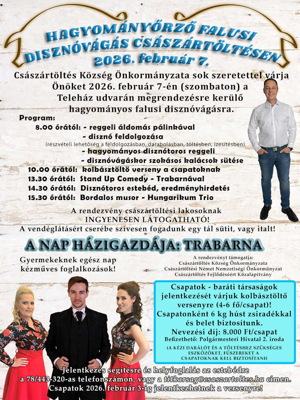 A rendezvény császártöltési lakosok szuámára ingyen látogatható. A vendéglátásért cserébe szívesen fogadunk egy kis sütit, vagy italt.