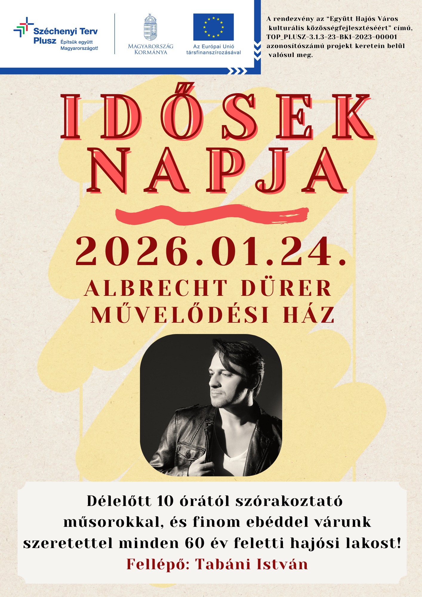 A rendezvény a TOP_PLUSZ-3.1.3-23-BK1-2023-00001 azonosítószámú, "Együtt Hajós Város kulturális közösségfejlesztéséért" című projekt keretében valósul meg.