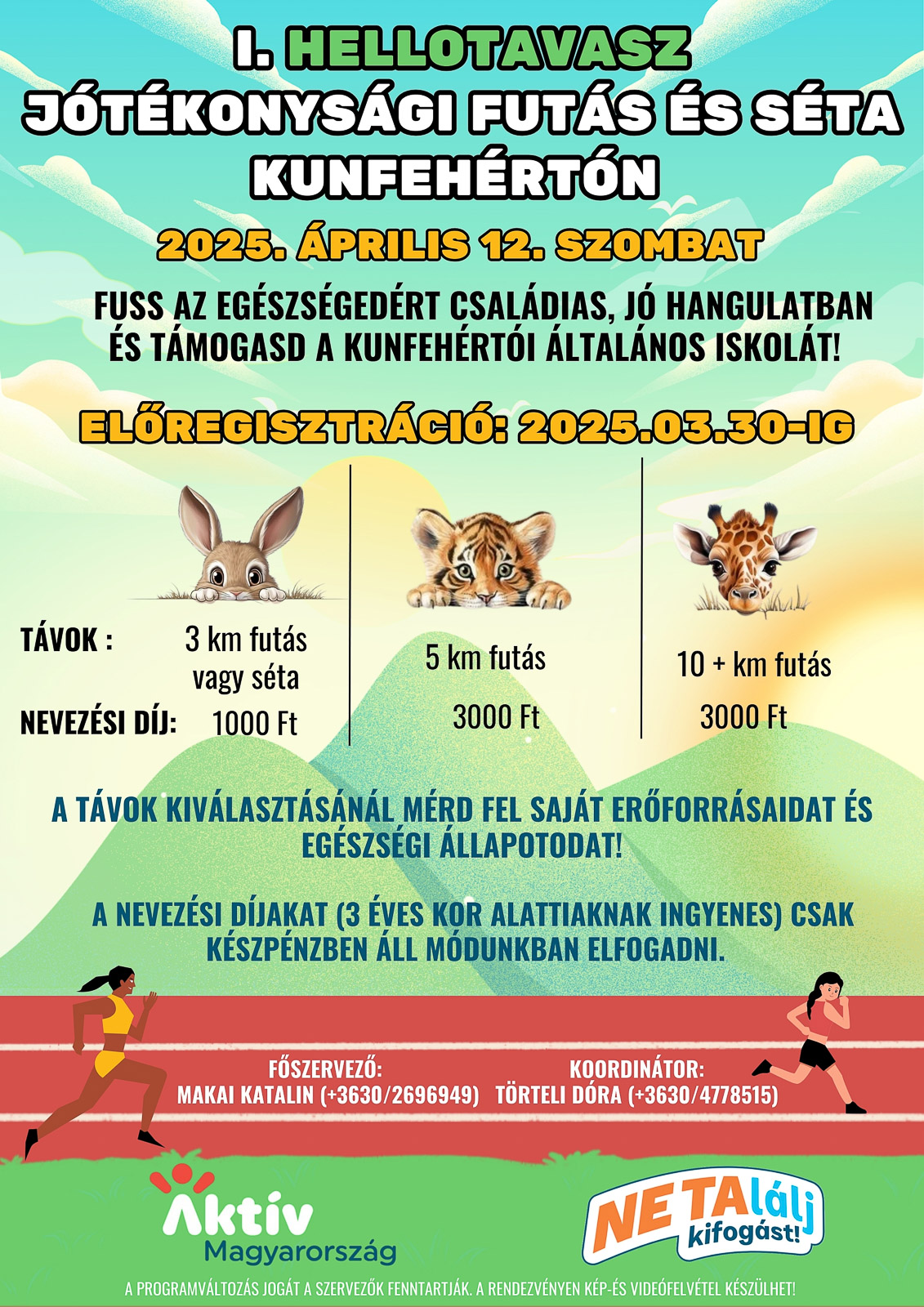 A mozgás mellett a Kunfehértói Általános Iskolát is támogathatod! Válassz távot, és csatlakozz hozzánk április 12-én!