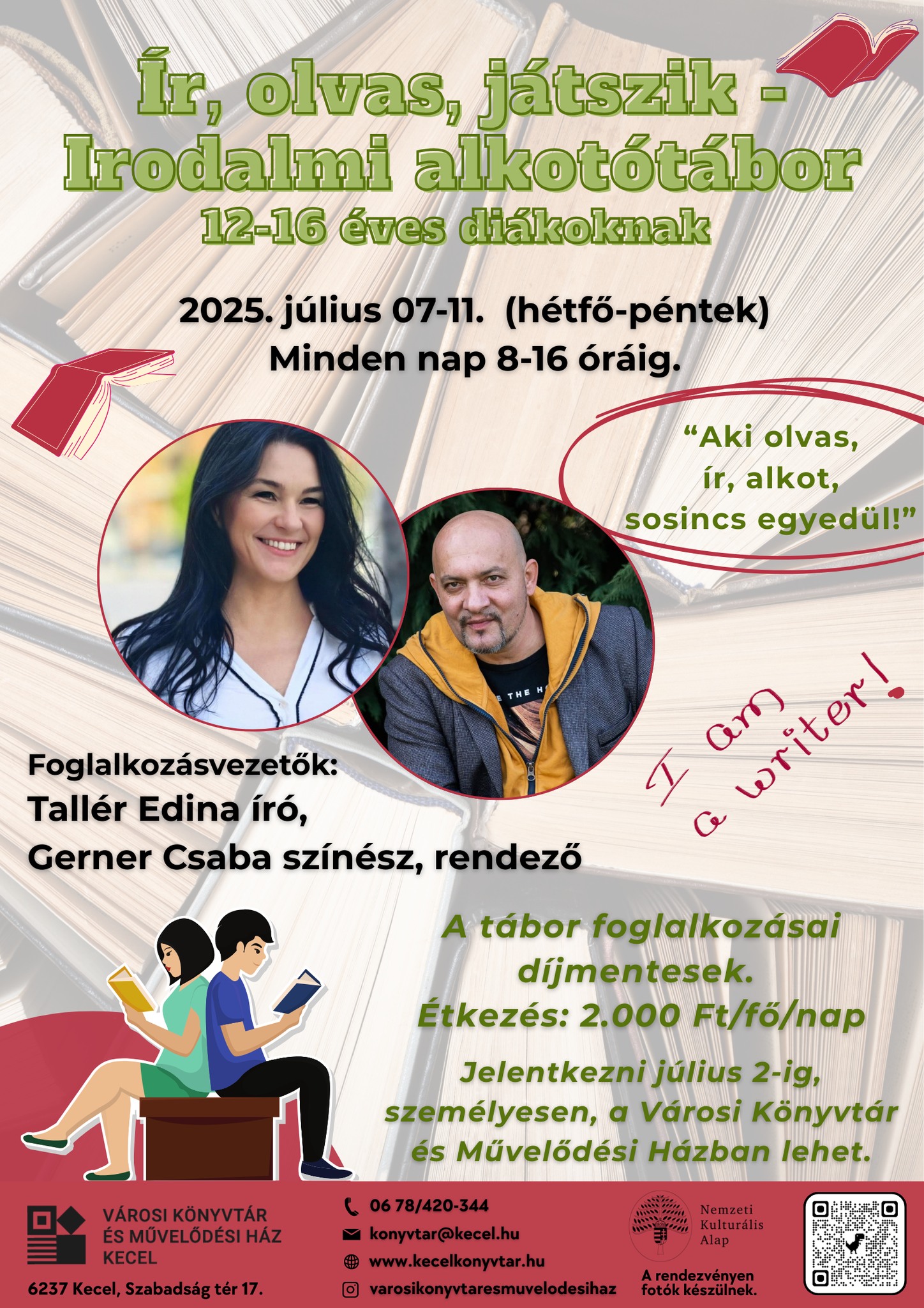 "Aki ír olvas, alkot, sosincs egyedül!" A gyerekeket Tallér Edina iró és Gerner Csaba színész, rendező segíti a tábor során.