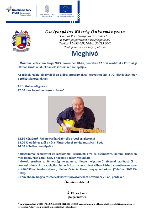 Szeretettel várjuk a 70. életévüket már betöltött lakosainkat!