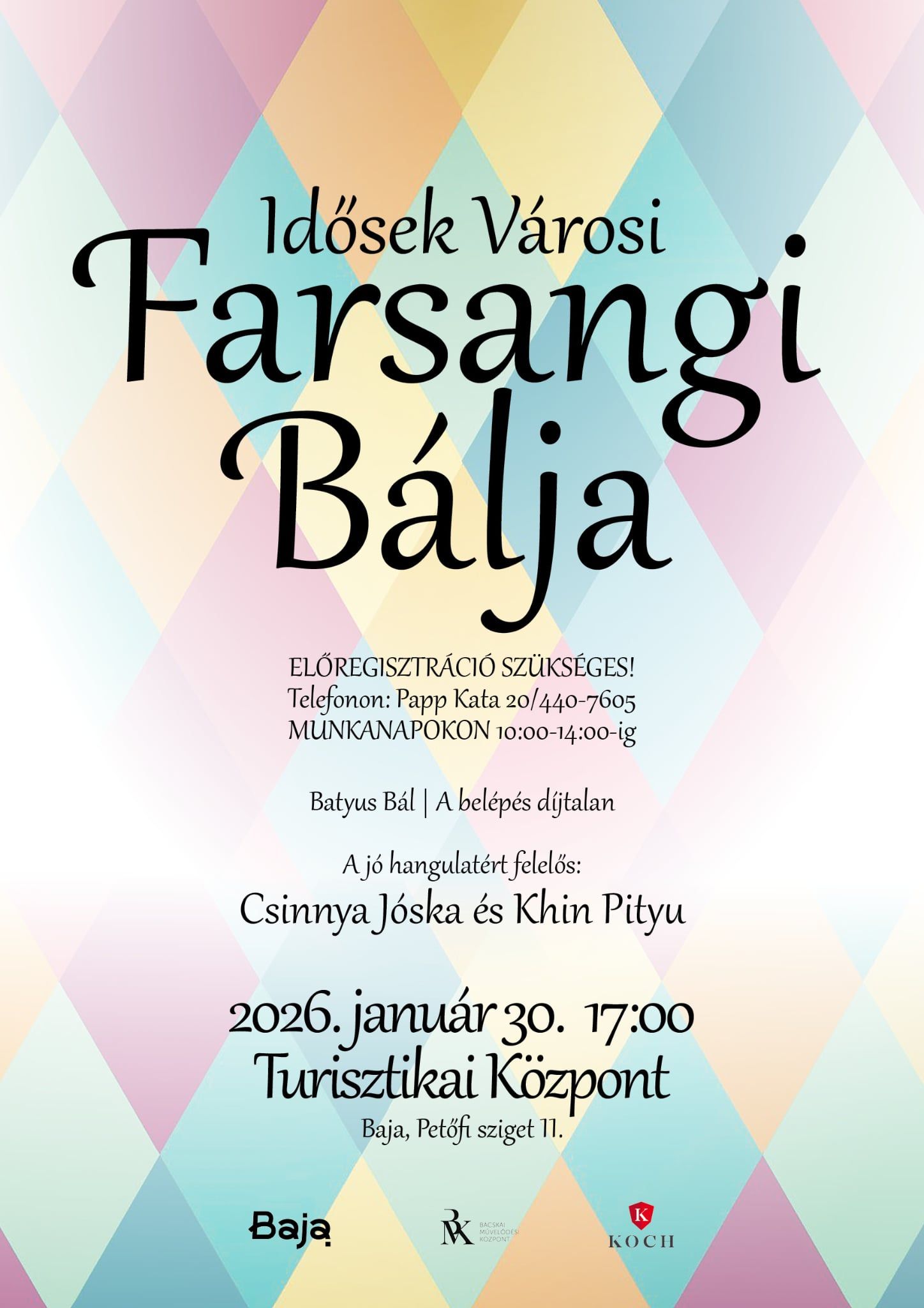 Szeretettel várjuk a szórakozni, kikapcsolódni vágyókat január 30-án 17:00 órától a Turisztikai Központban.