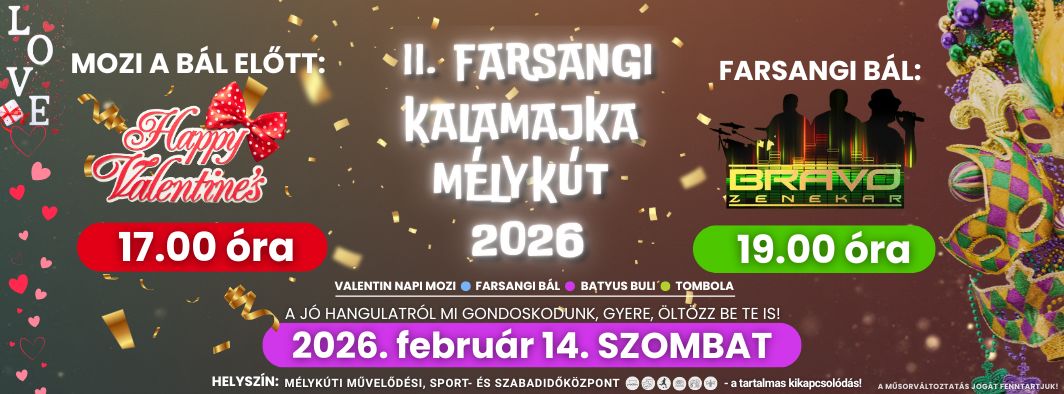 Az esti FARSANGI bálra is várunk szeretettel, de előtte, az ingyenes programokra is számítunk Rád!