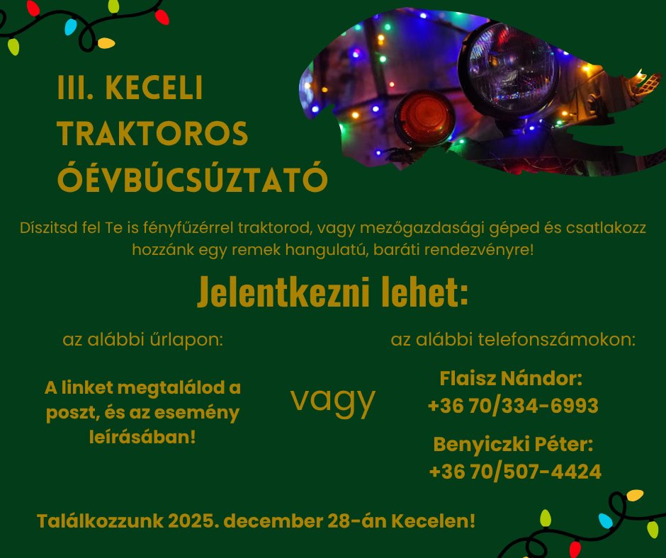 Díszítsd fel Te is fényfüzérrel tarktorod, vagy mezőgazdasági géped és csatlakozz hozzánk egy remek hangulatú, baráti rendezvényre!
