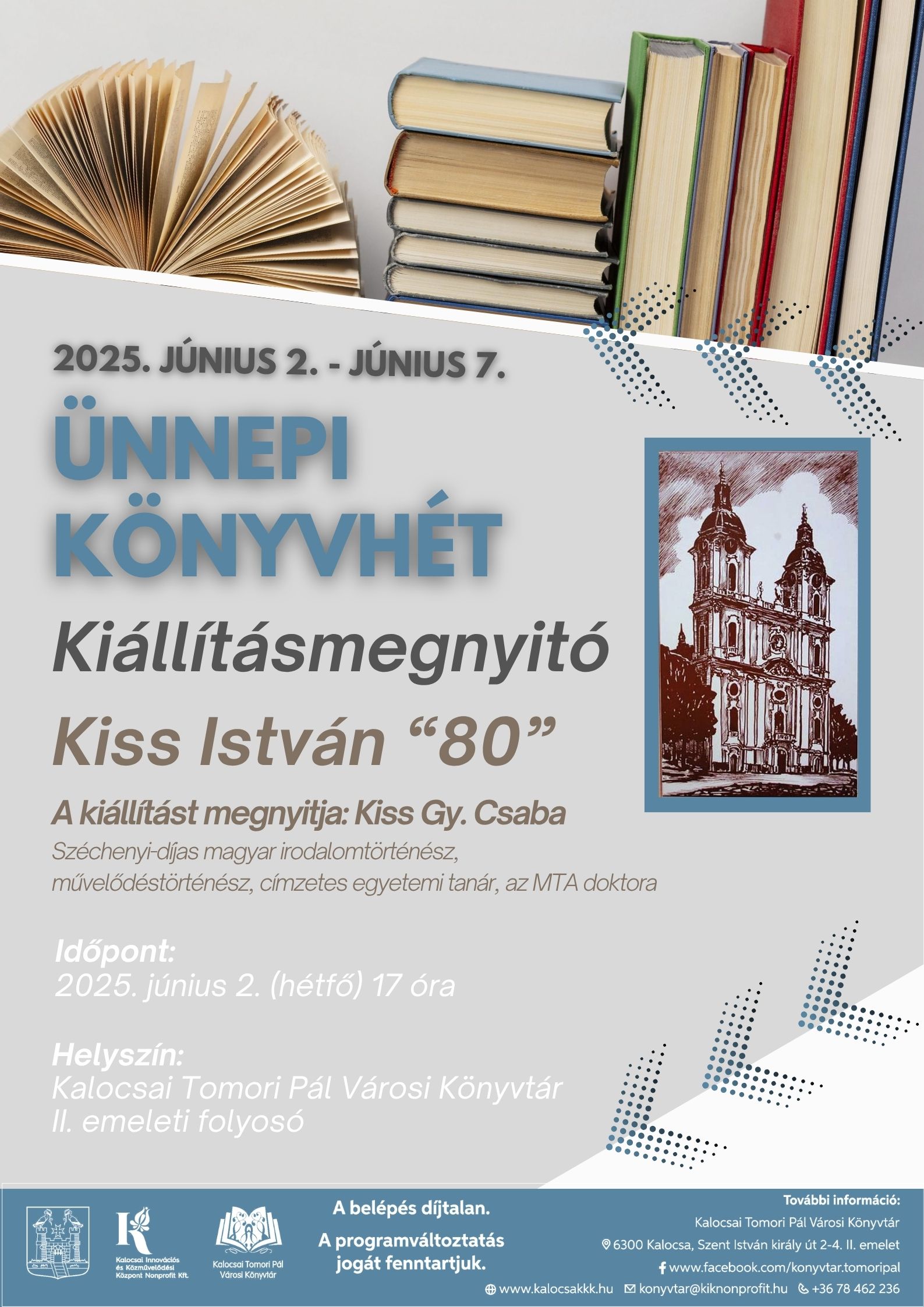 A kiállítást megnyitja: Kiss Gy. Csaba Széchenyi-díjas magyar irodalomtörténész, művelődéstörténész, címzetes egyetemi tanár, az MTA doktora.