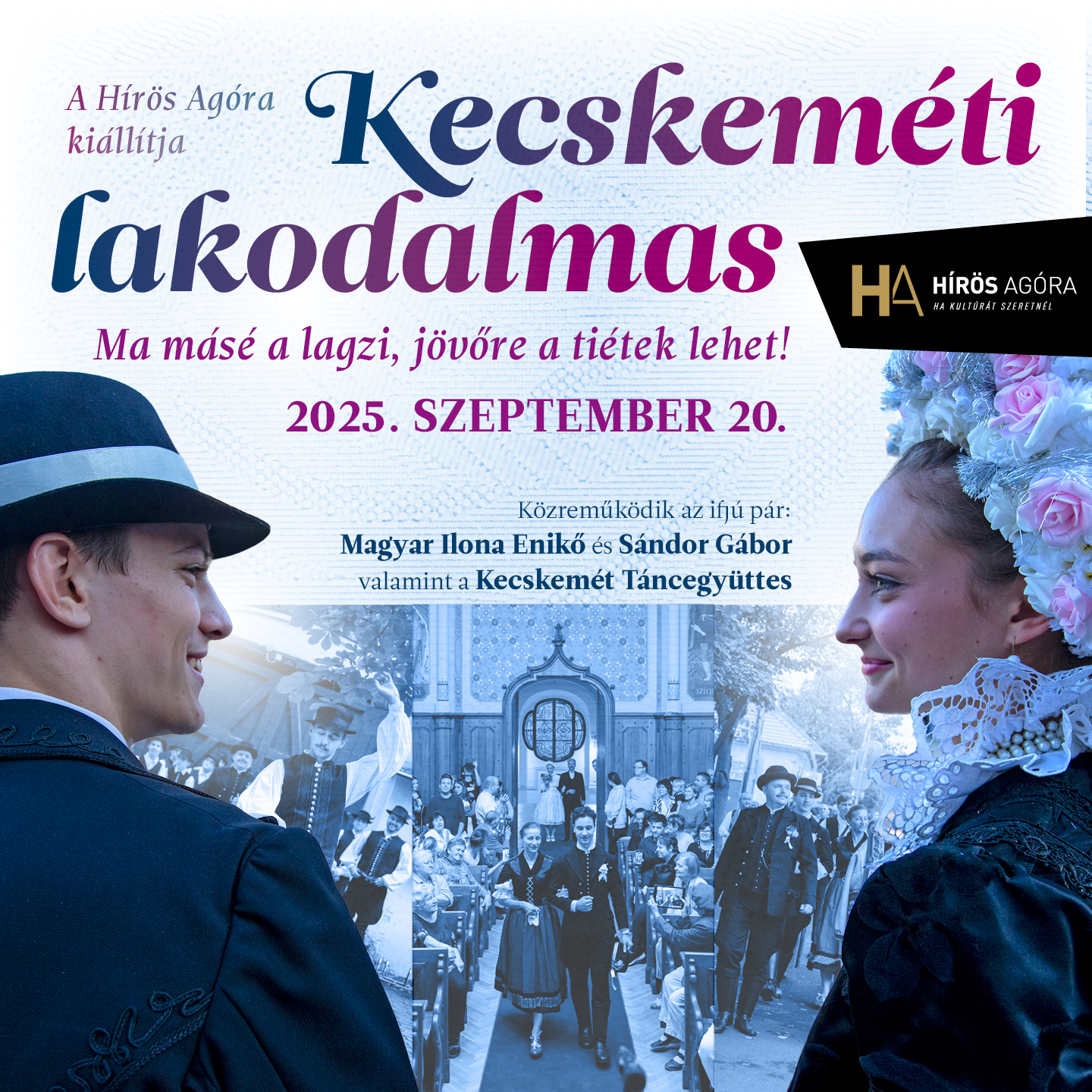 A Hírös Agóra életre kelti a magyar lakodalmas hagyományokat: igazi vőfélyek, kikérés, legénybúcsú, leánybúcsúztató és ünnepi esküvői szertartás várja az érdeklődőket – mindezt a Kecskemét Táncegyüttes közreműködésével, a "Sereglés 2025 - Kárpát-medence népművészete rendezvény" keretében