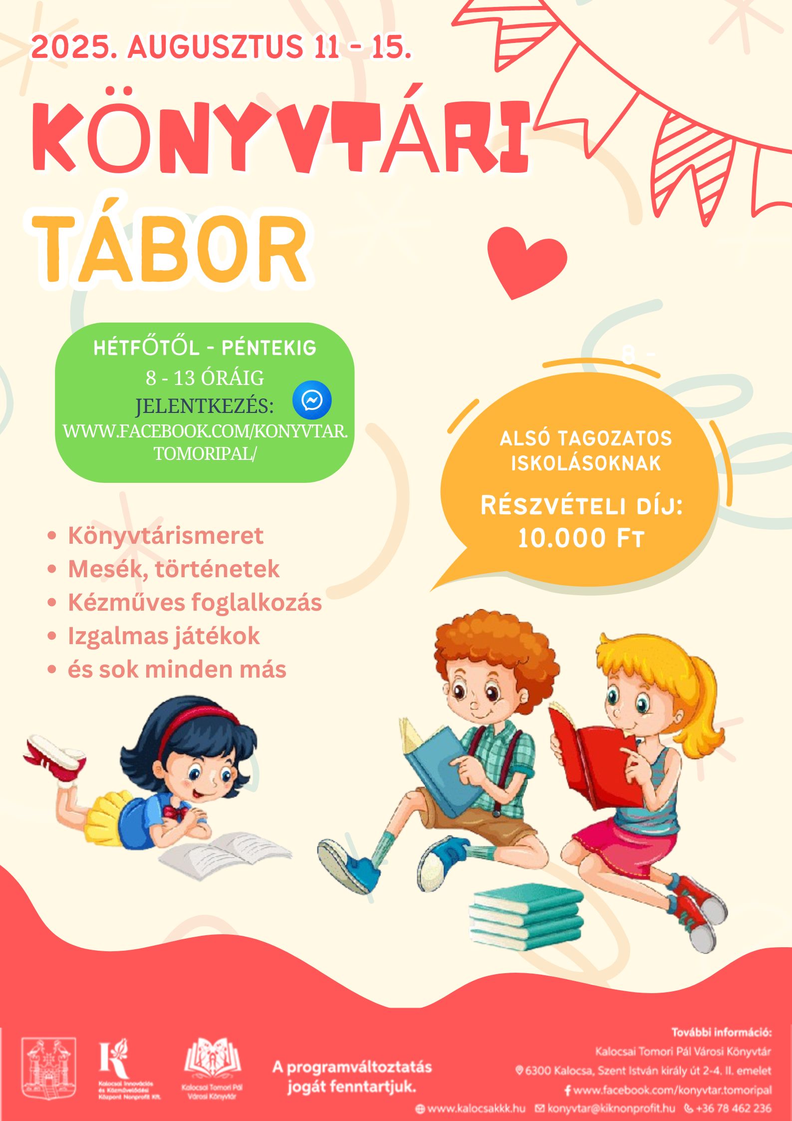 Könyvtárismeret, mesék, töténetek, kézműves foglalkozás, izgalmas játékok és még sok más…