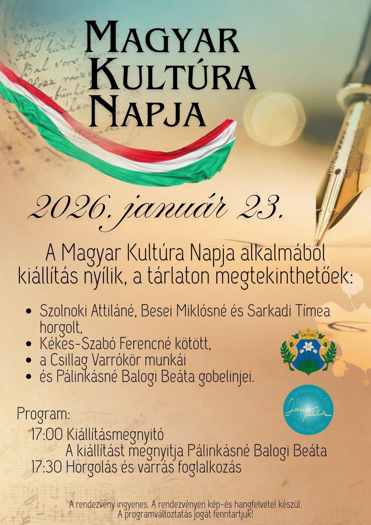 A Magyar Kultúra Napja alkalmából kézimunka kiállítás és tárlat nyílik.