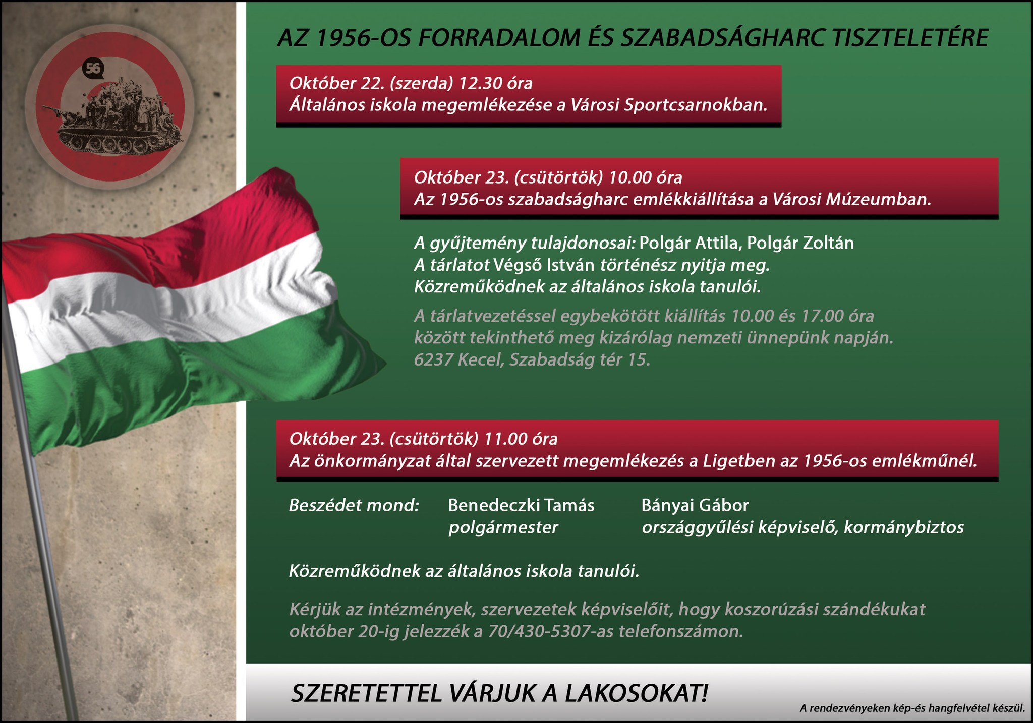 Október 23. (csütörtök) 11:00 – Városi megemlékezés a Ligetben, az 1956-os emlékműnél.