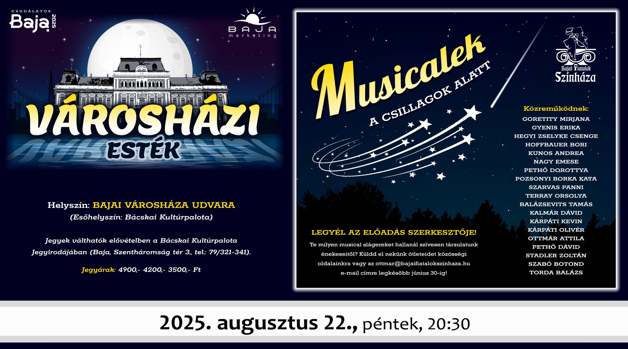 A Városházi Esték jubileumi évadníyitó eseménye a Bajai Fiatalok Színháza előadásában.