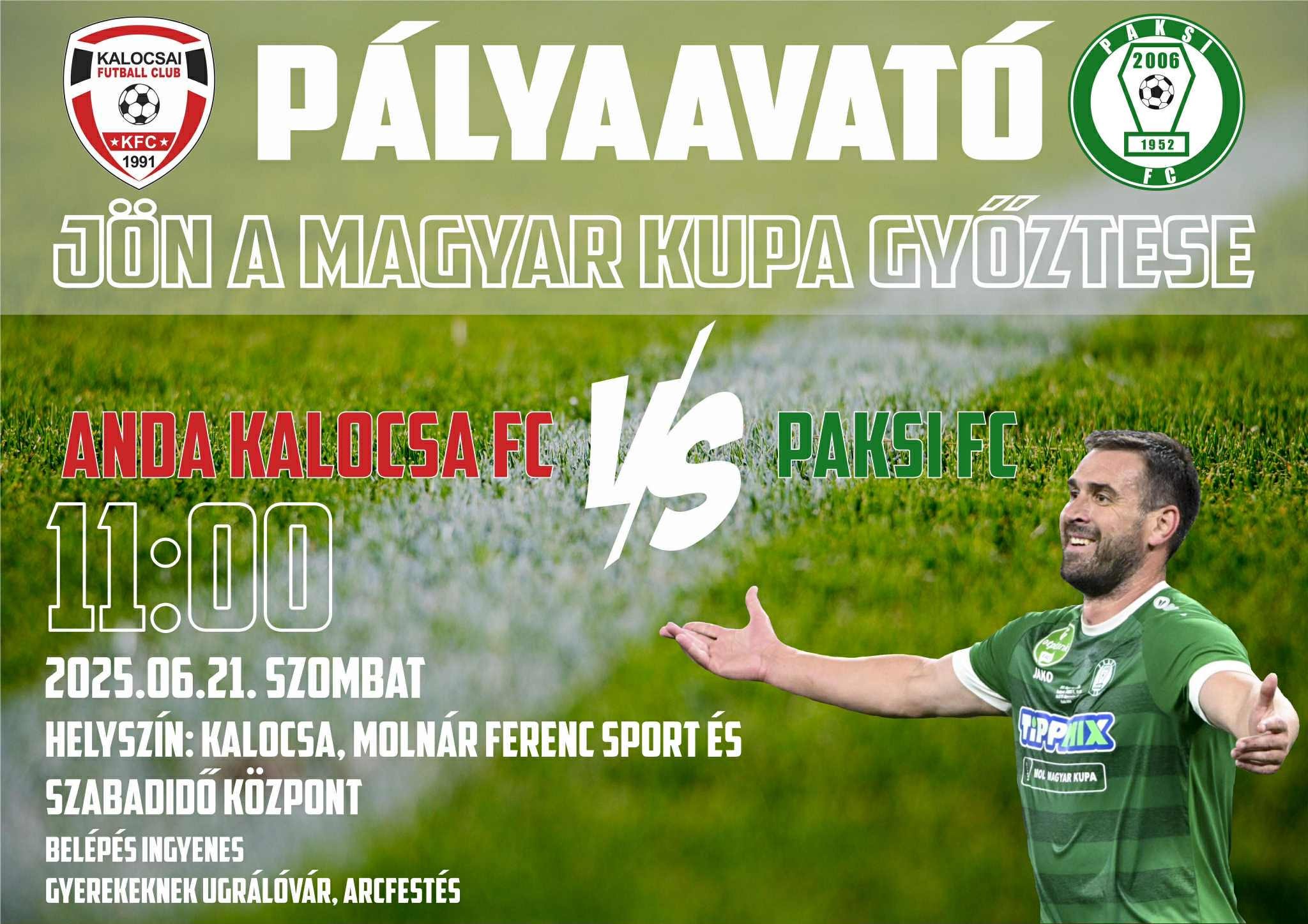 Barátságos mérkőzéssel avatják fel a megújult centerpályát, a Paksi FC NB I-es, Kupagyőztes csapata lesz az ellenfelünk