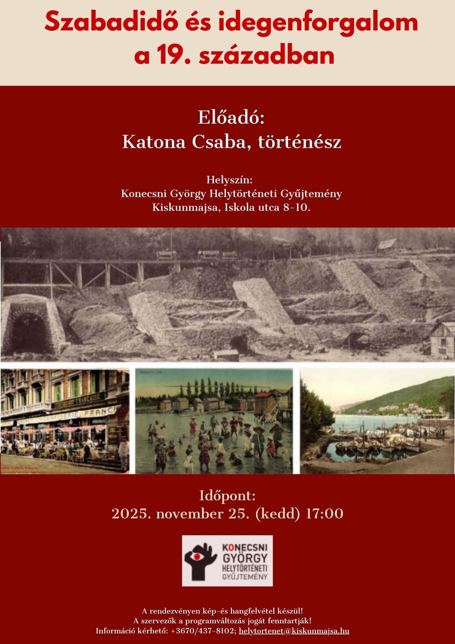 Szeretettel várunk minden érdeklődőt egy különleges, időutazással felérő előadásra, ahol megtudhatjuk, hogyan alakultak ki a modern turizmus és a szabadidő eltöltésének formái a 19. században.