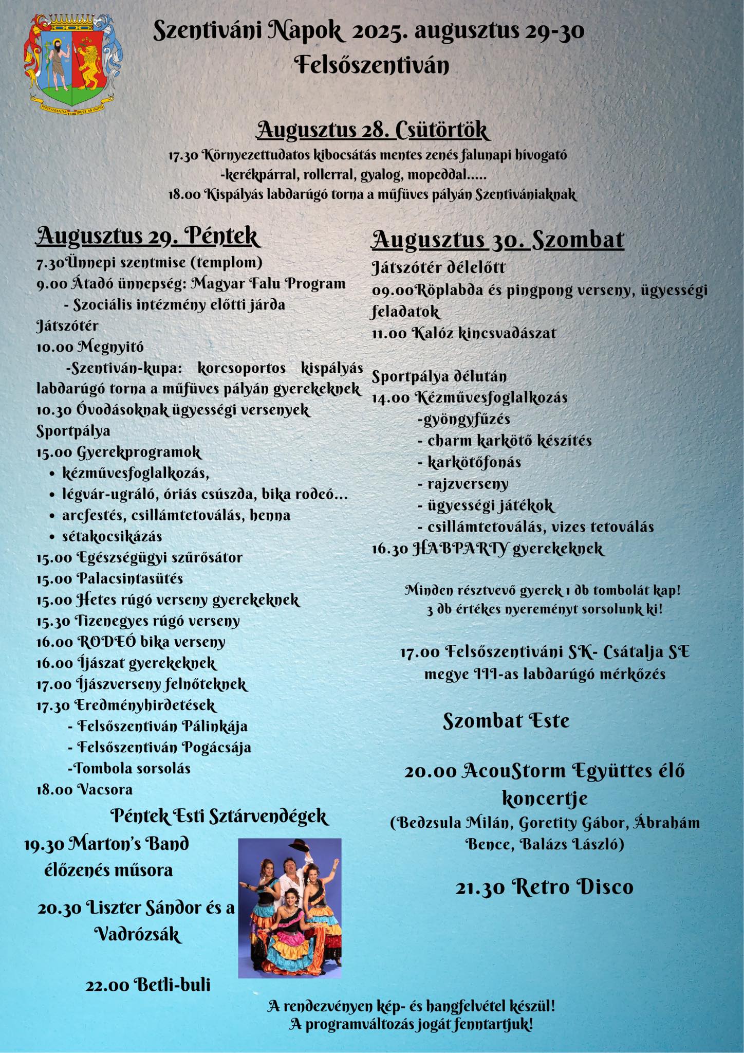 Mint minden alkalommal, ezúttal is színes-vidám forgataggal ünnepeljük Felsőszentivánt.