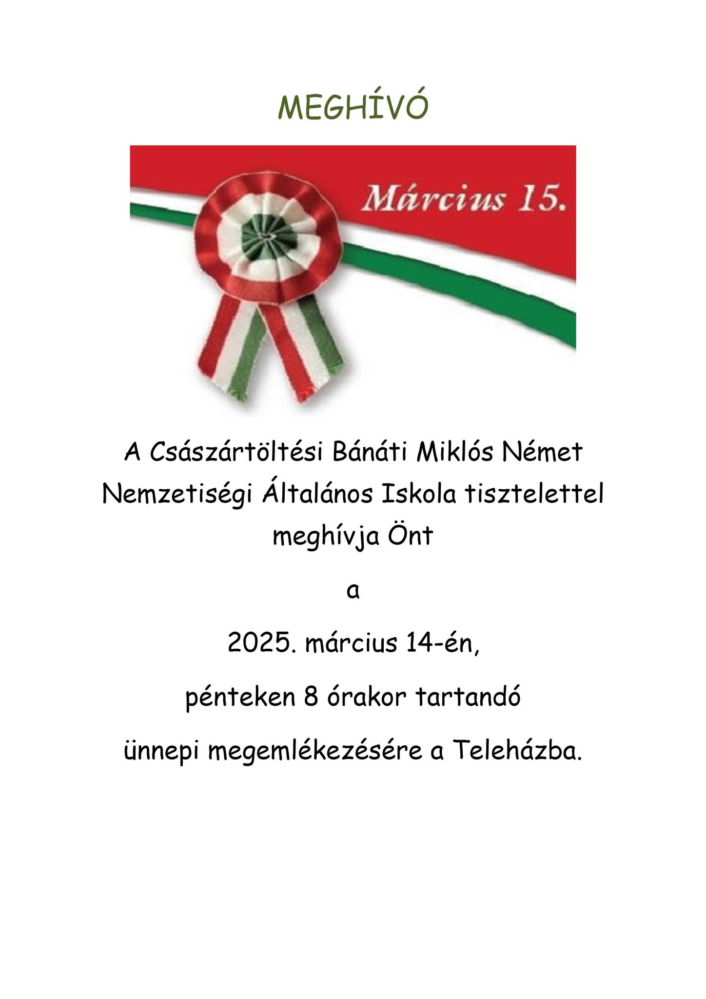 A Császártöltési Bánáti Miklós Német Nemzetiségi Általános Iskola diákjainak ünnepi műsora.