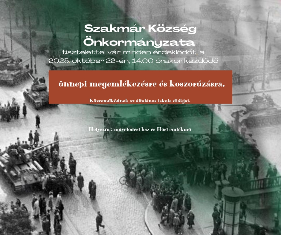 Az 56-os forradalom és szabadságharc alkalmából az általános iskola diákjai adnak műsort, majd megkoszorúzzák a világháborúkban elesett katonák síremlékét.
