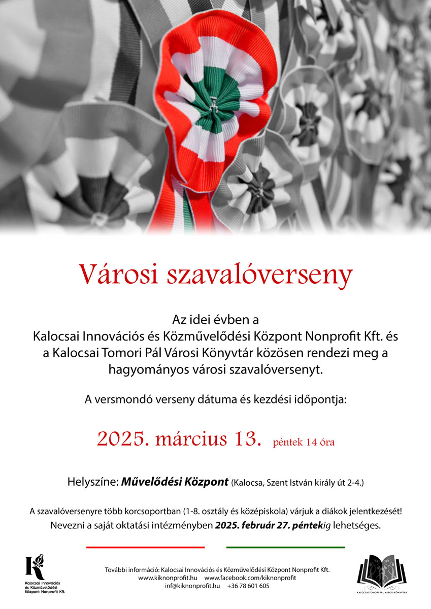Várjuk a lelkes szavalókat és az érdeklődő közönséget is szeretettel!