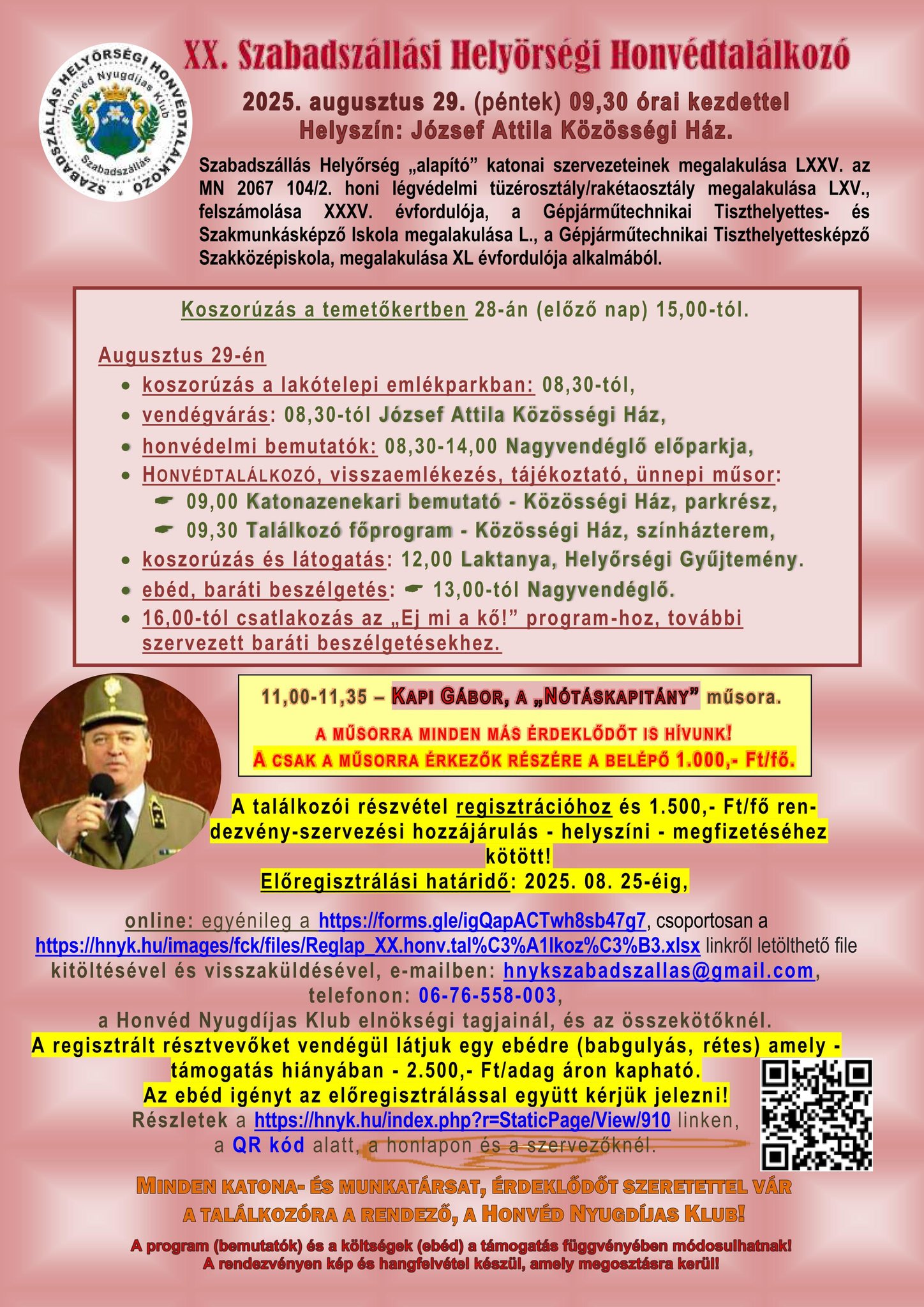 A Honvéd Nyugdíjas Klub tisztelettel hívja és várja a helyőrség aktív- és nyugállományú katonáit, köz- és polgári alkalmazottait, valamint minden érdeklődőt.