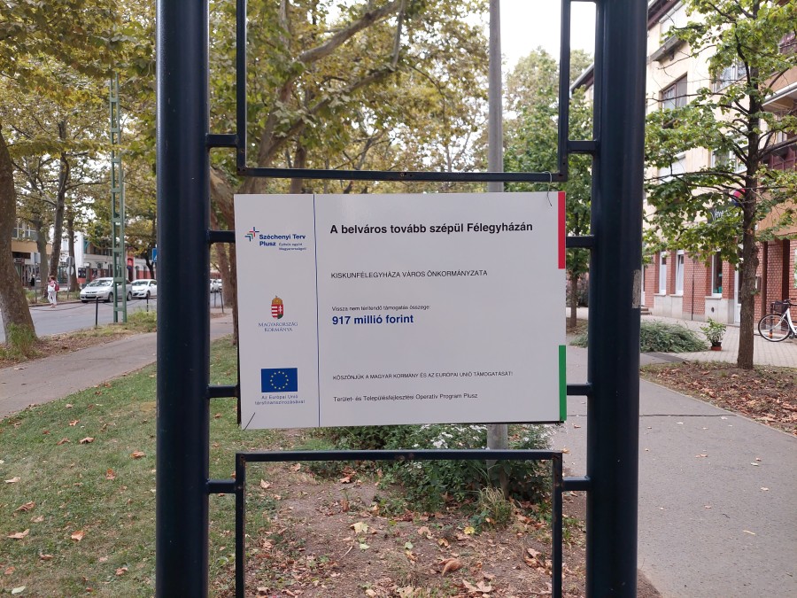 Kiskunfélegyháza Város Önkormányzata pályázatot nyújtott be a Terület- és Településfejlesztési Operatív Program Plusz, TOP_PLUSZ-1.2.1-21 ÉLHETŐ TELEPÜLÉSEK felhívásra „A belváros tovább szépül Félegyházán” címmel (projekt azonosítószáma: TOP_PLUSZ-1.2.1-21-BK1-2022-00016). A projekt keretében 917,00 millió Ft vissza nem térítendő európai uniós forrásból egy modern belvárosi környezet jött létre.