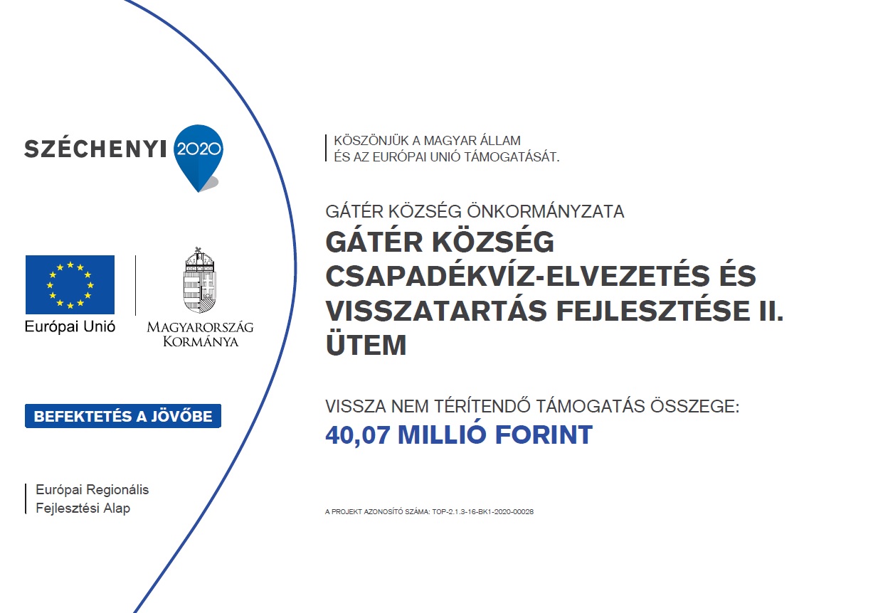 TOP-2.1.3-16-BK1-2020-00028 Települési környezetvédelmi infrastruktúra fejlesztések – Gátér község csapadékvíz-elvezetés és visszatartás fejlesztése II. ütem