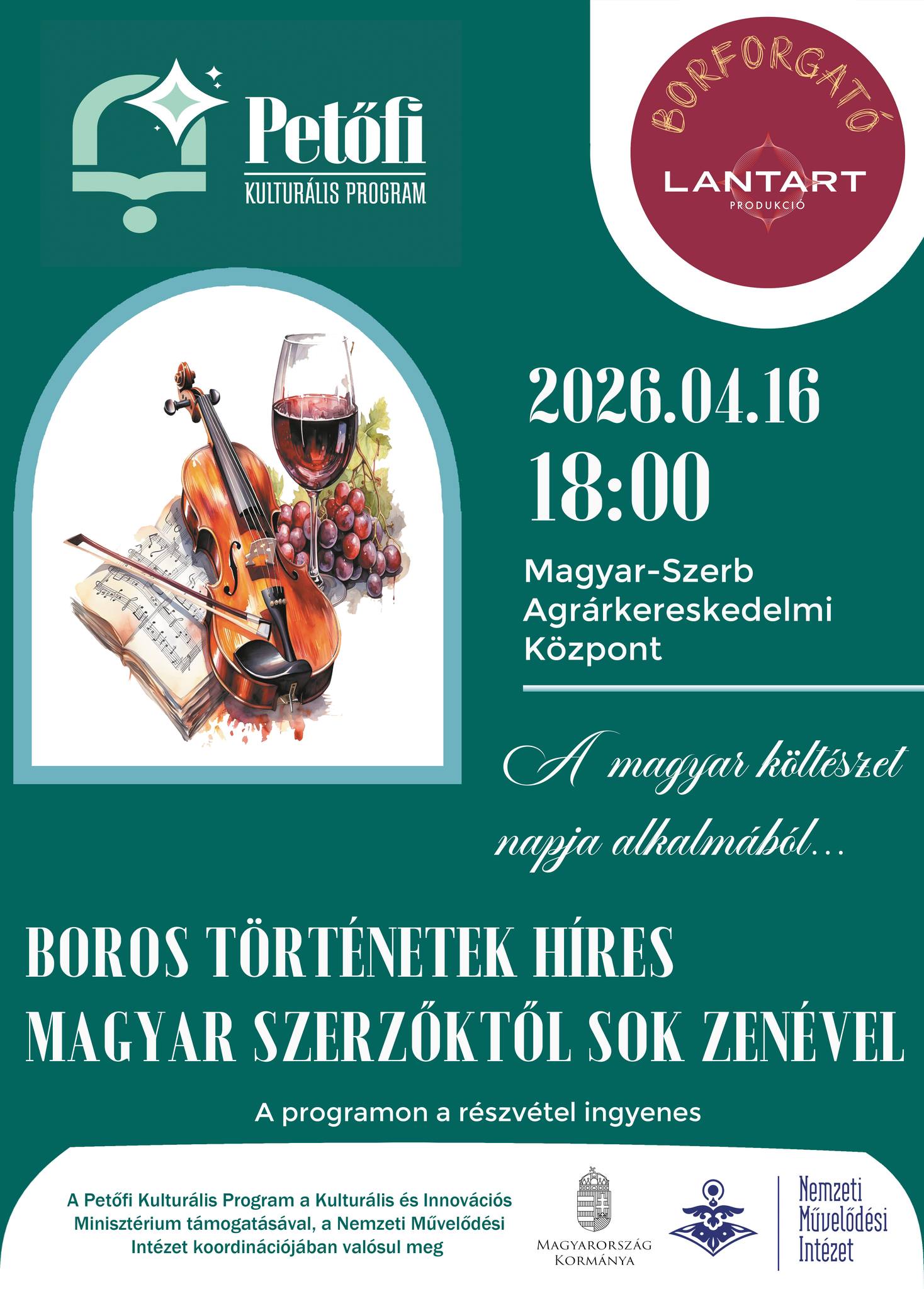 Egy óra a bor, a magyar irodalom és a jó zene kedvelőinek, három remek művész előadásában.