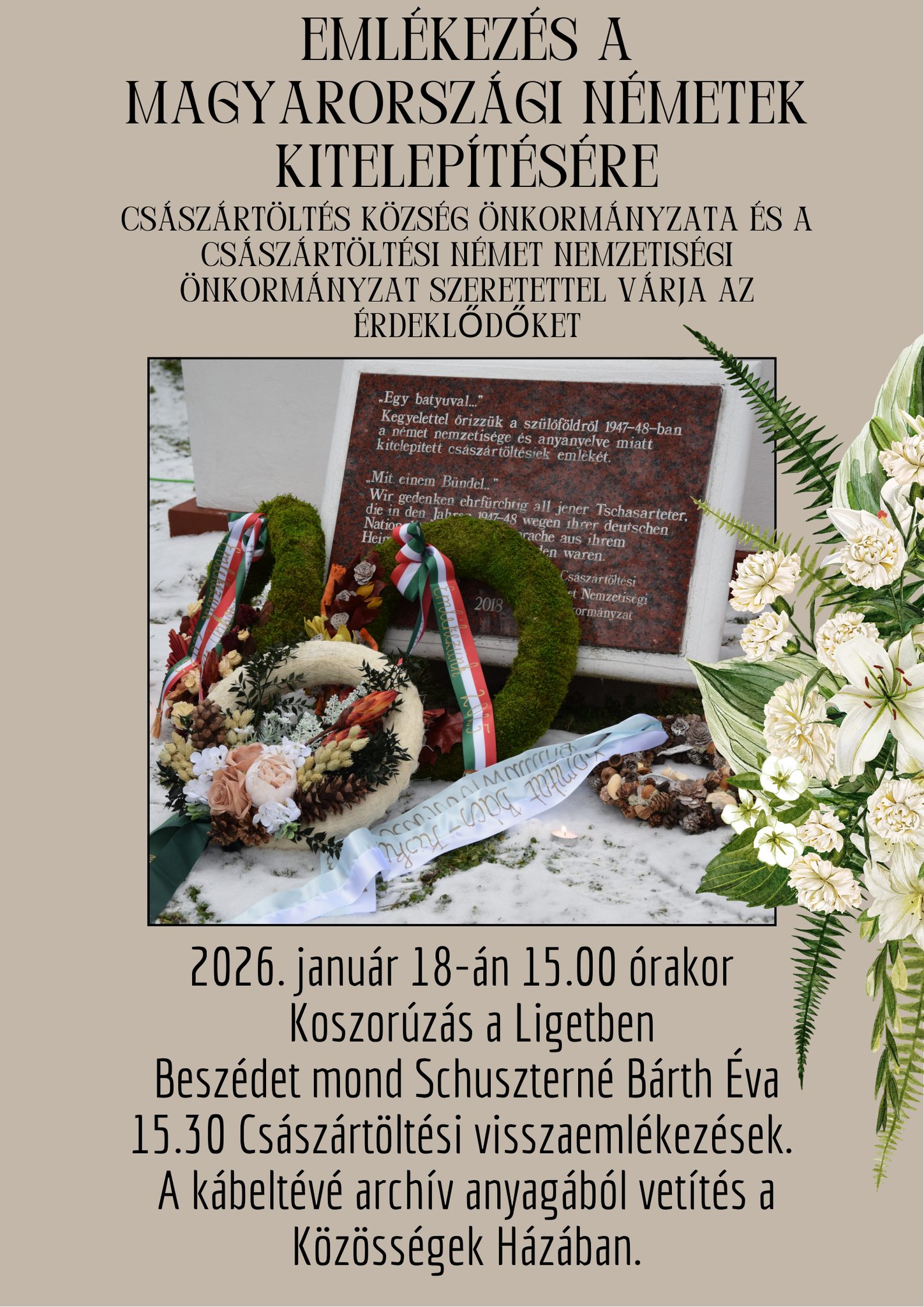Koszorúzás a Ligetben, beszédet mond Shuszterné Bárth Éva.