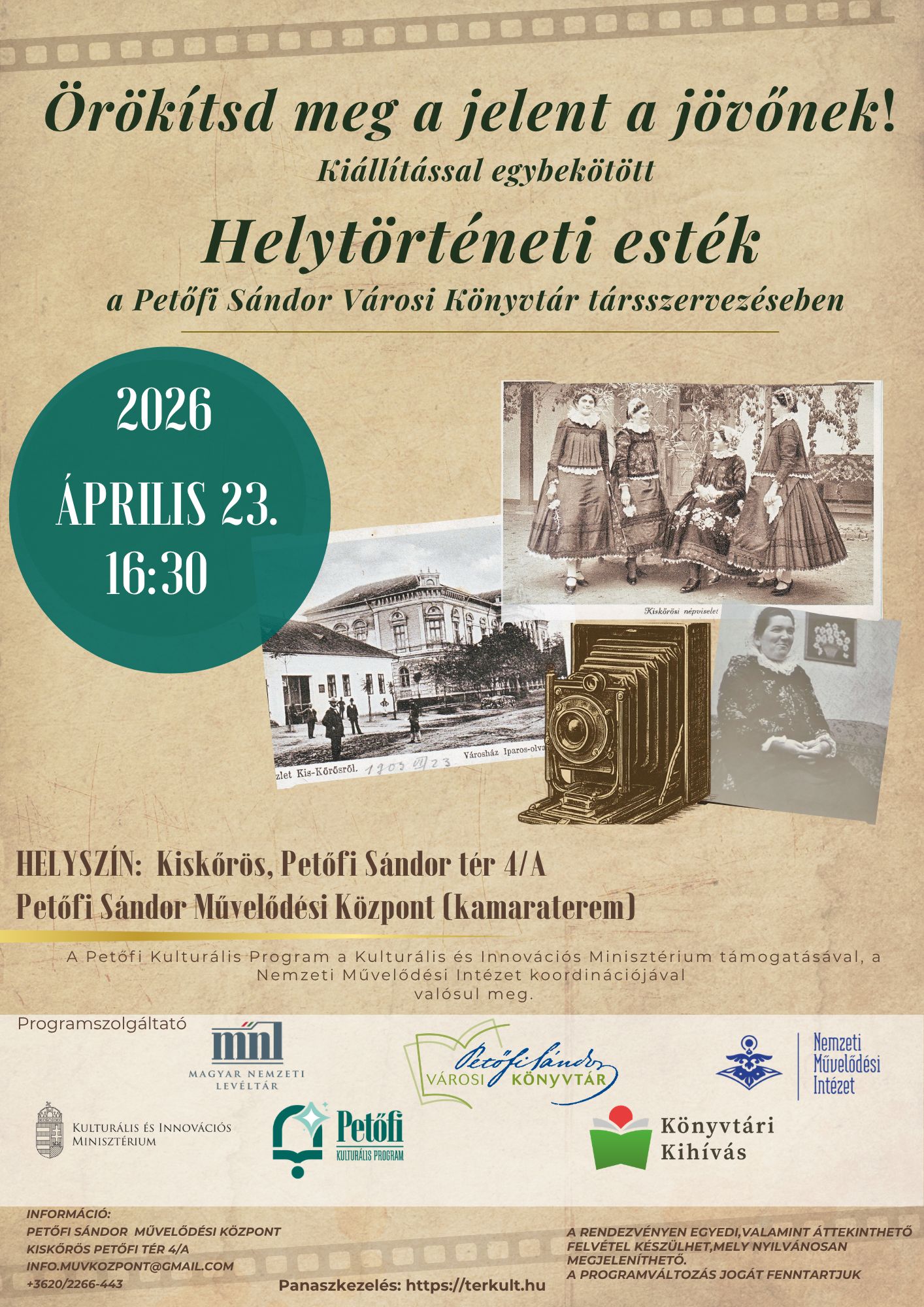 Szeretettel várunk minden érdeklődőt egy különleges, kiállítással egybekötött helytörténeti estére, ahol múlt és jelen találkozik.