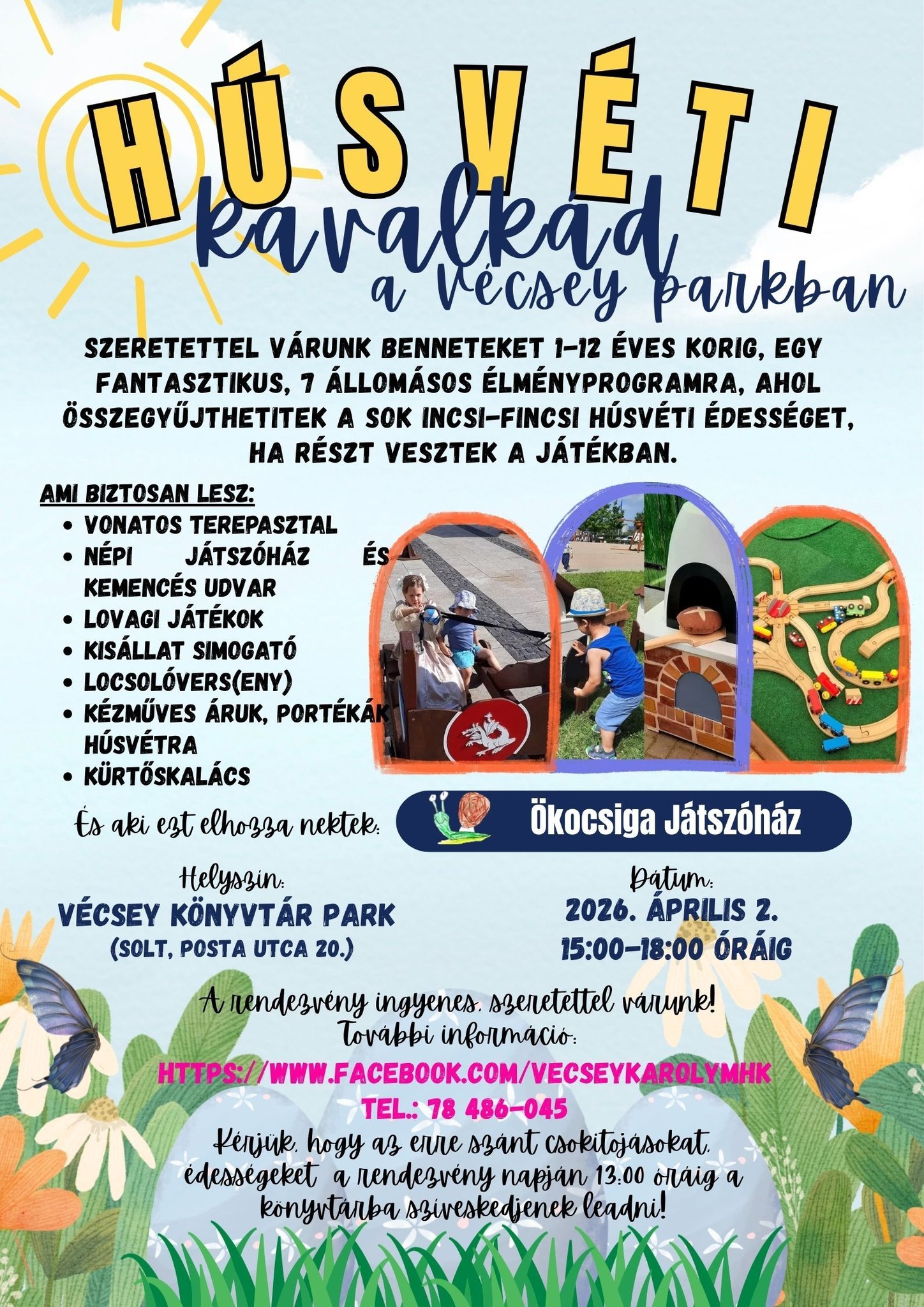 Szeretettel várunk Benneteket 1-12 éves korig, egy fantasztikus, 7 állomásos élményprogramra, ahol összegyűjthetitek a sok fincsi-fincsi húsvéti édességet, ha részt vesztek a játékban.