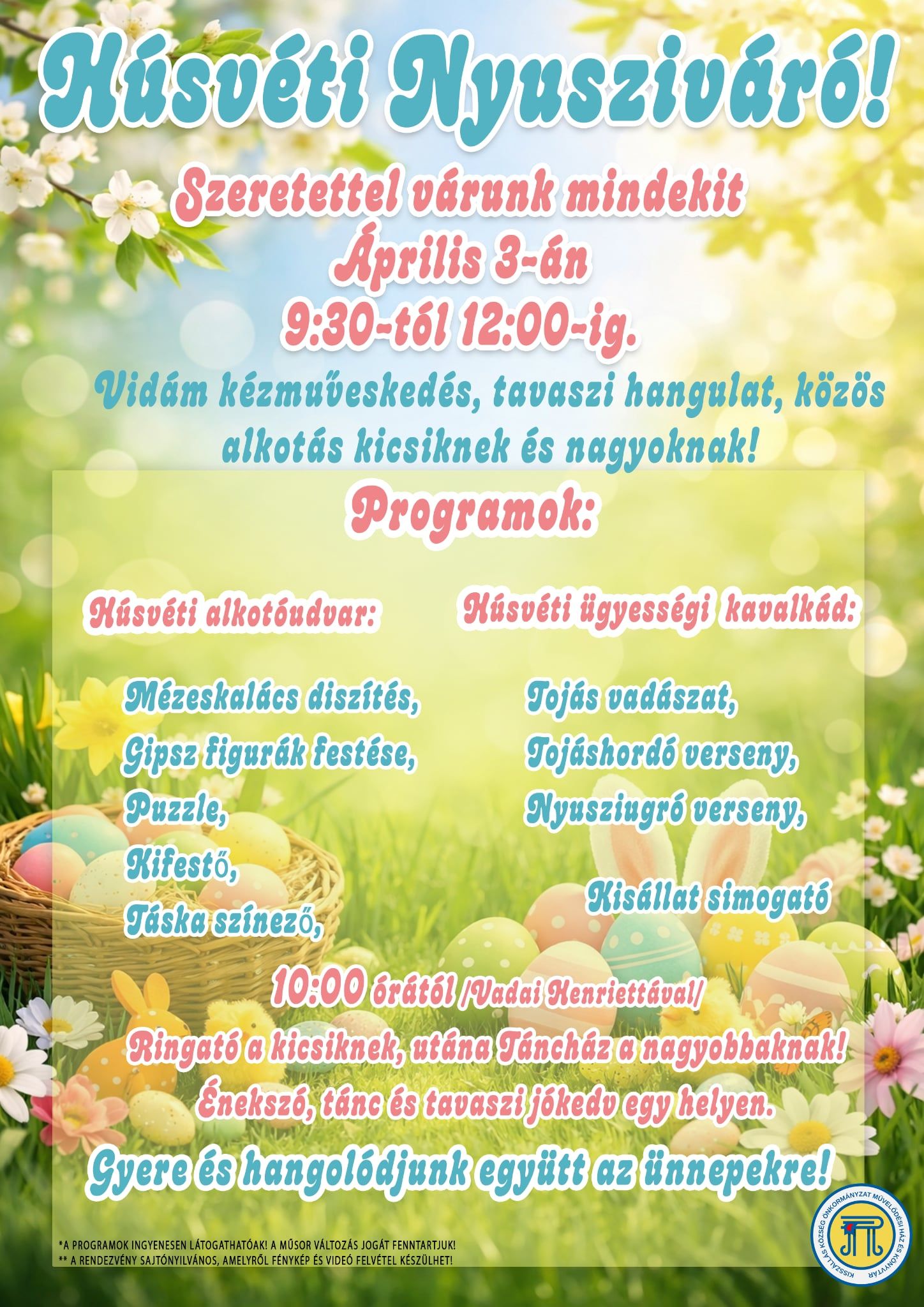 Kézműveskedés, tojásvadászat, versenyek, kisállat simogató és táncház vár rátok!