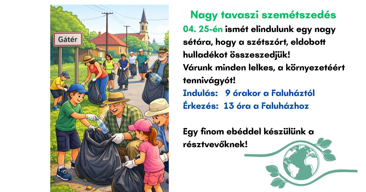 Közösségi szemétszedés falun innen, s túl, majd egy finom ebéd a résztvevőknek!