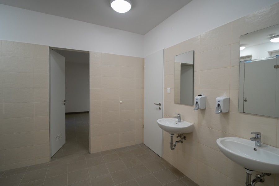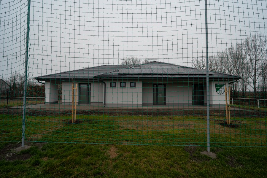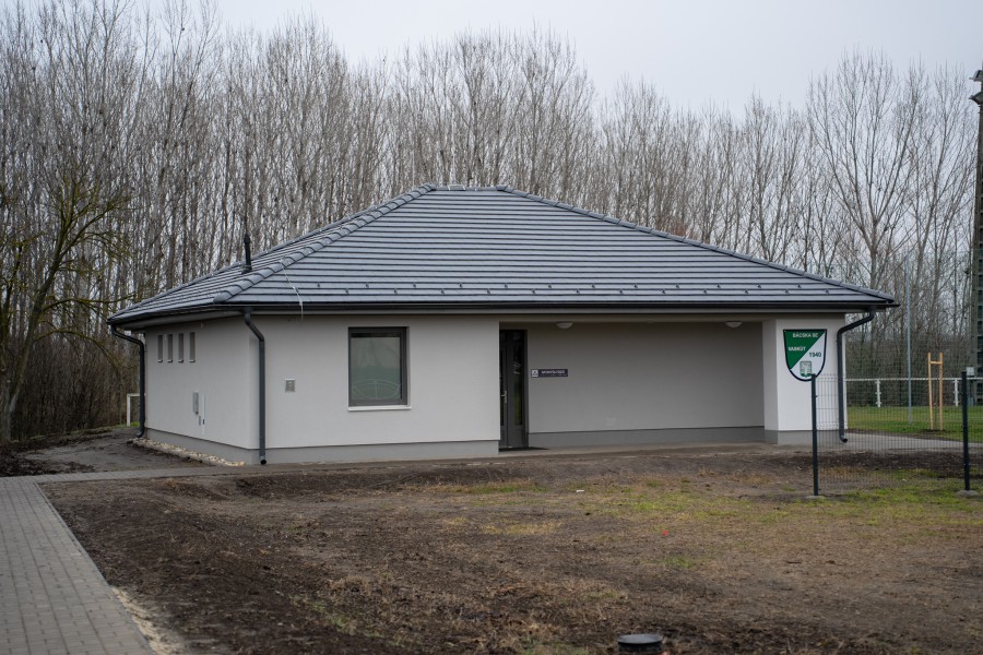 A projekt másik főeleme esetében egy új sportöltöző került megépítésre a sportpálya közvetlen szomszédságában.