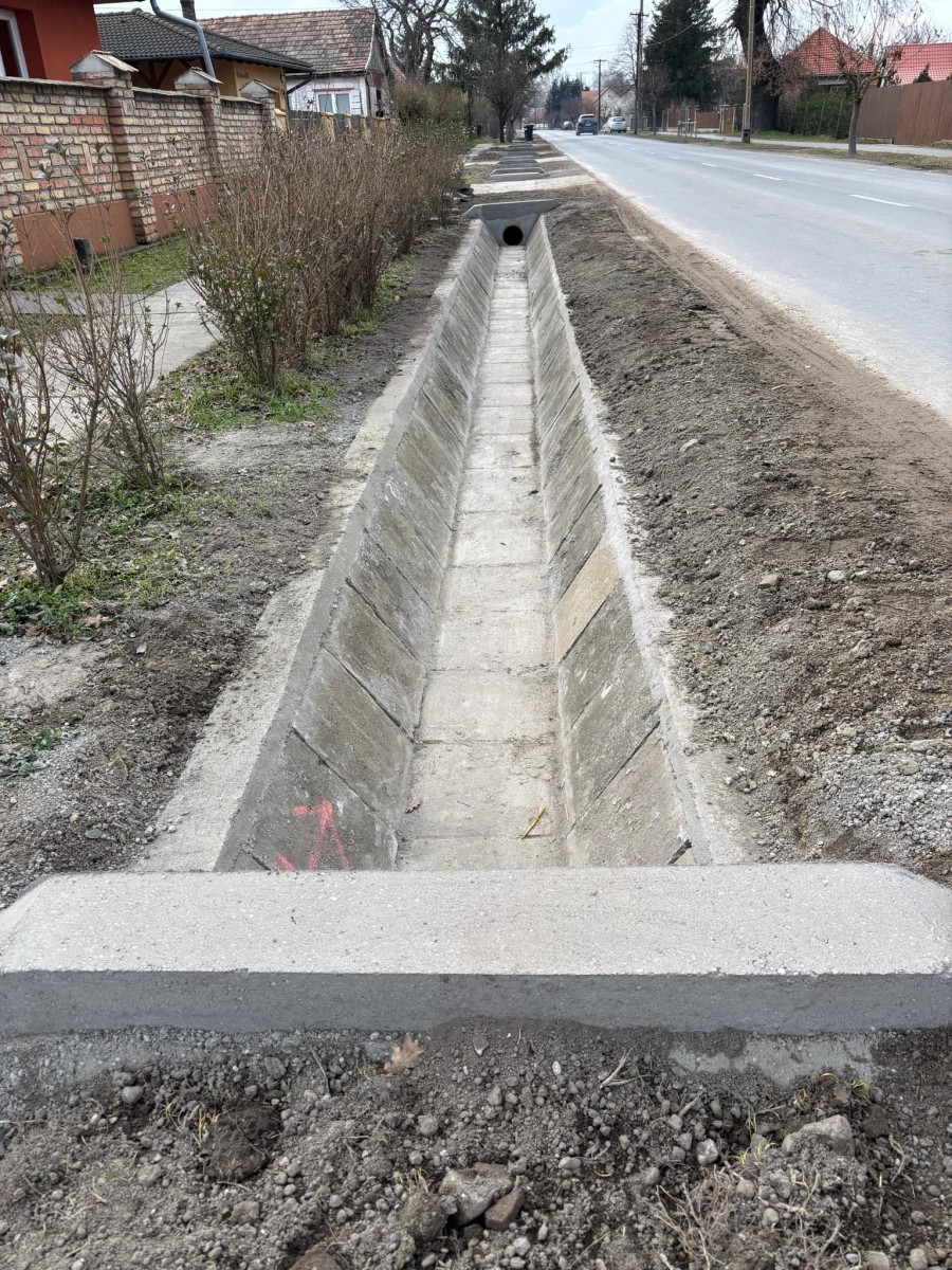 A TOP_PLUSZ-1.2.1-21 ÉLHETŐ TELEPÜLÉSEK elnevezésű felhívás keretében az 92,50 millió forint európai uniós támogatás segítségével a Vasút, Mátyás és Dózsa utca csapadékvíz elvezetésének megoldása történt meg 773 fm hosszúságban.