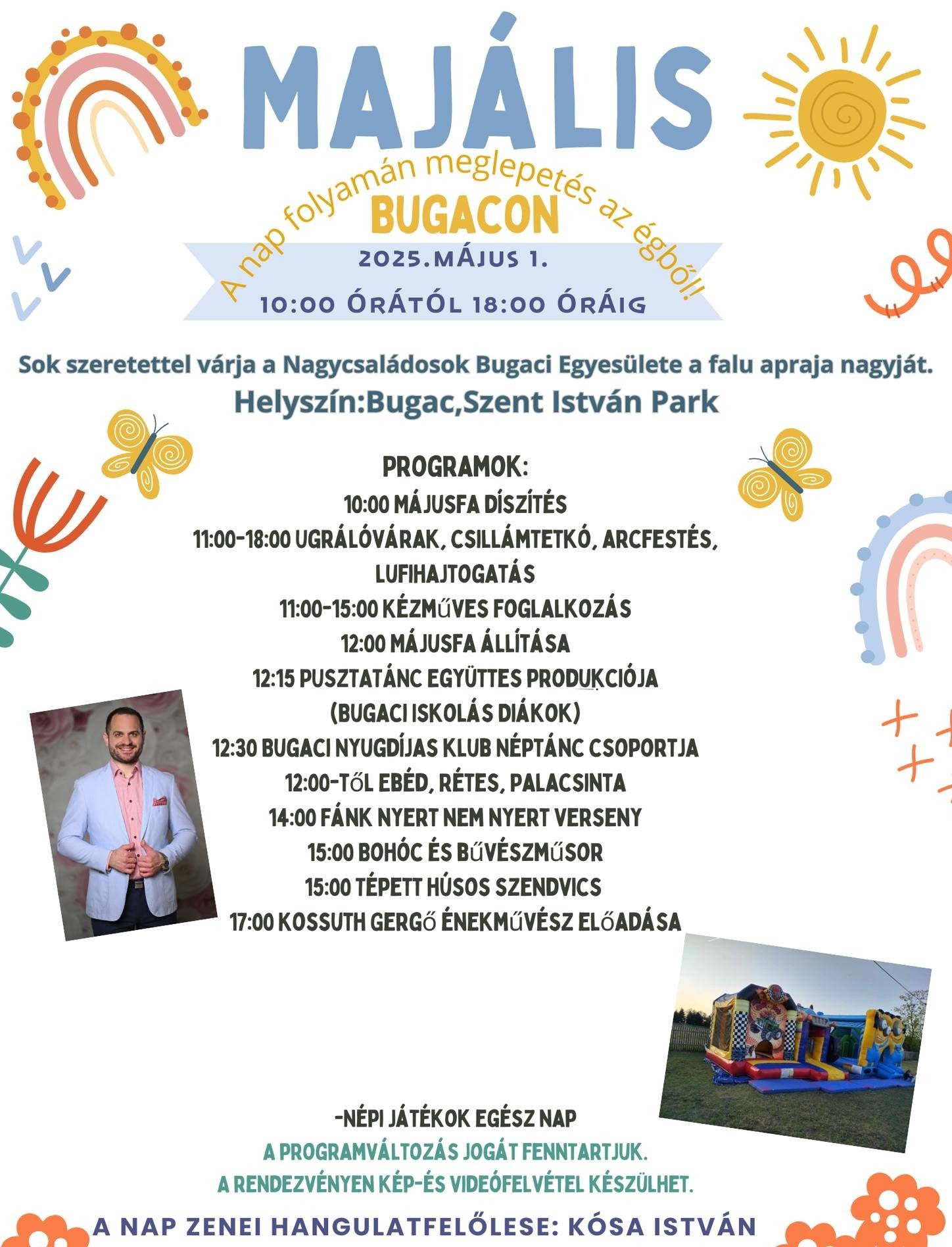 Bugac a Duna és Tisza között, annak középső részén az ún. kiskunsági homokhátságon helyezkedik el. Bugac, Bugacs, Bugacháza, Monostorfalva, Bugacmonostor mind-mind Bugac megnevezése, s megoszlik a vélemény arról, hogy miről vagy kiről is kapta a település a nevét. A kun kódex szerint a „Buga” szó bikát jelent. A Bugac, illetve a „Bugacs” szó a bikával foglalkozó egyén. A legrégibb, több mint 600 esztendős okmány, 1391. február 4-én kelt, amelyben először található meg a Bugac személynév. Egy 1451. december 16-án Halason kelt okmány már Bugac helyét és fekvését is pontosan megjelölte.Bugac története egészen a közelmúltig szorosan összefügg Kecskemét városával, melynek hosszú-hosszú századokig bérleti, majd tulajdonosi birtoka volt. 1642-ig tudjuk visszakövetni a történetet, amikor is Eszterházy Pál a jászok és kunok főkapitánya 6 kun pusztát adományozott Kecskemétnek. Ezzel nagy fejlődés indult meg Bugac területén, egyrészt a pásztorkodás, másrészt a földek megművelése, a gazdálkodás terén. A Kecskeméti Lapok 1926. március 25-i számából tudjuk, hogy a Klebelsberg Kunó kultuszminiszter által kezdeményezett iskolaépítés Bugacra is eljutott. Még ez évben megtörtént a pusztai iskolák helyének kijelölése, Alsómonostoron, Kisbugacon, Monostorfalván, Felsőmonostoron. 1933. május 21. fordulópontot jelentett Bugac idegenforgalmának életében. Az országos idegenforgalmi szervek, és az országos sajtó részére e napon rendezte meg az idegenforgalmi iroda a bugaci bemutatót. Ettől a naptól a bugaci idegenforgalom világsikert aratott. Látogatók, főleg külföldiek ezrei jönnek, közeli és távoli országokból a bugaci pásztorélet megtekintésére. 1937-ig közel 20.000 látogatója volt a bugaci pusztának. 1950. január 1-je Bugac eddigi történetének talán legjelentősebb változását hozta. A több évszázados kecskeméti függőség után Bugac önálló tanácsú településsé vált. Ekkor Bugac lakóinak száma 5.550 fő, területe pedig 17.500 ha volt. 1970-ben nagyközségi rangot kapott Bugac, lakónépességének száma ekkor 4980 fő volt. A lakosság nagy része, 3767 fő külterületen lakott. Sajnos Bugac lakosságának fogyása ez idő tájban kezdődött. Bugac ma a maga 174 km2-ével Bács-Kiskun Megye 6. legnagyobb kiterjedésű települése. A bugaci puszta községünk legújabb történelmében is világhírűvé vált, köszönhető ez a terület egy részének védetté, Nemzeti Parkká nyilvánításának. A bugaci pusztán az idelátogató turisták ma is megtekinthetik az ősi foglalkozásból, a pásztoréletből fennmaradt tárgyi emlékeket, s az idegenforgalmi idényben a napi bemutatókon látható a puszta ötös, a csikós élet, az ősi állatfaj, a magyar szürkemarha, a ménes és a rackanyáj is. A turisták a Nemzeti Parki séta, a lovasbemutatók után a Karikás Csárdában, a Bugaci Csárdában, a Délibáb Csárdában és a Táltos Lovaspanzióban jó hangulatú cigányzene mellett ismerkedhetnek a magyaros ételekkel, ízekkel és a tüzes alföldi borokkal.